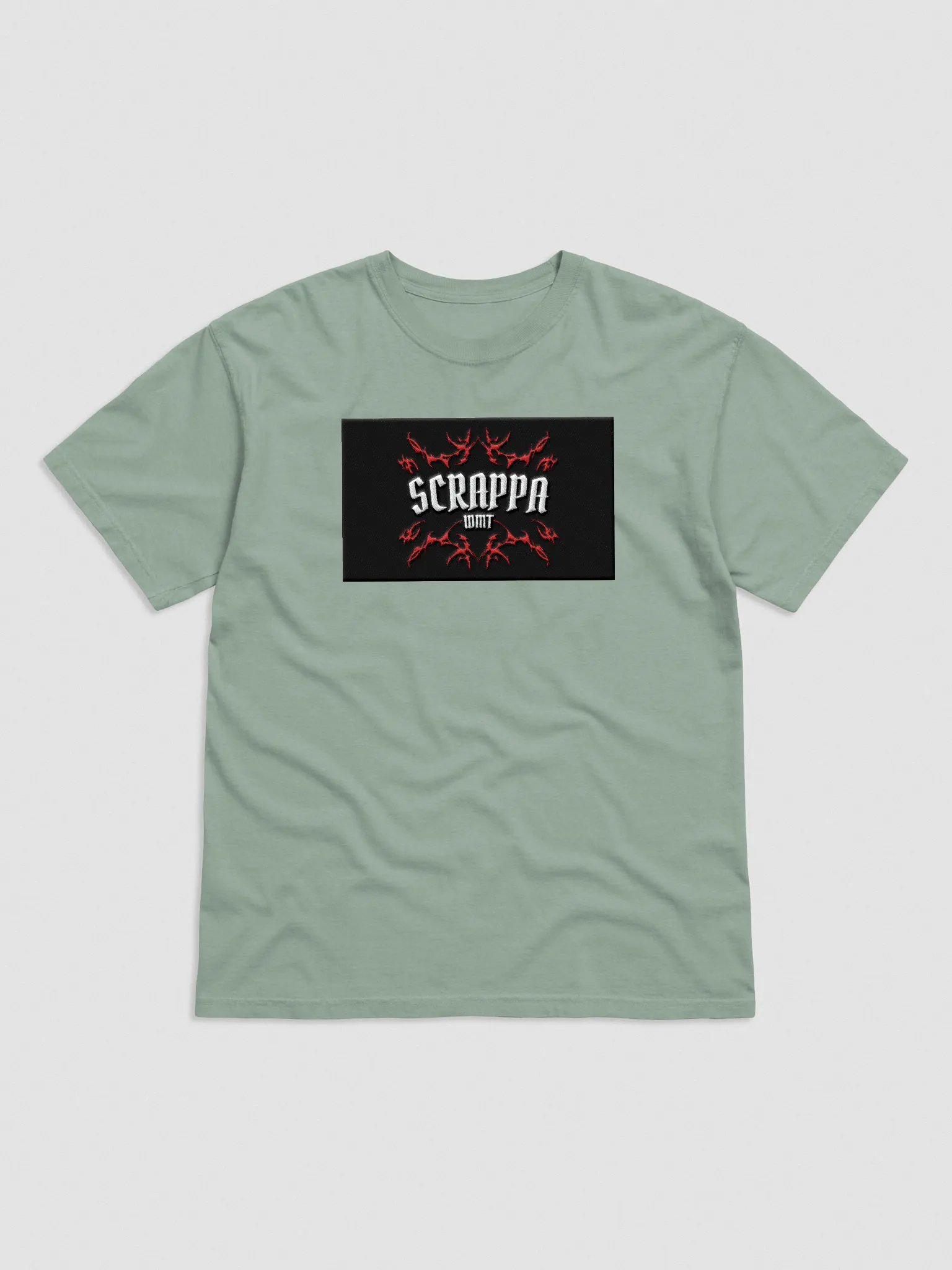 Embrace comfort and style with our 100% cotton heavyweight t-shirt. Featuring a bold 'SCRAPPA' design in gothic font, complemented by red tribal graphics, this tee offers a relaxed fit and pre-shrunk fabric for all-day comfort. Stand out with this unique, edgy look.